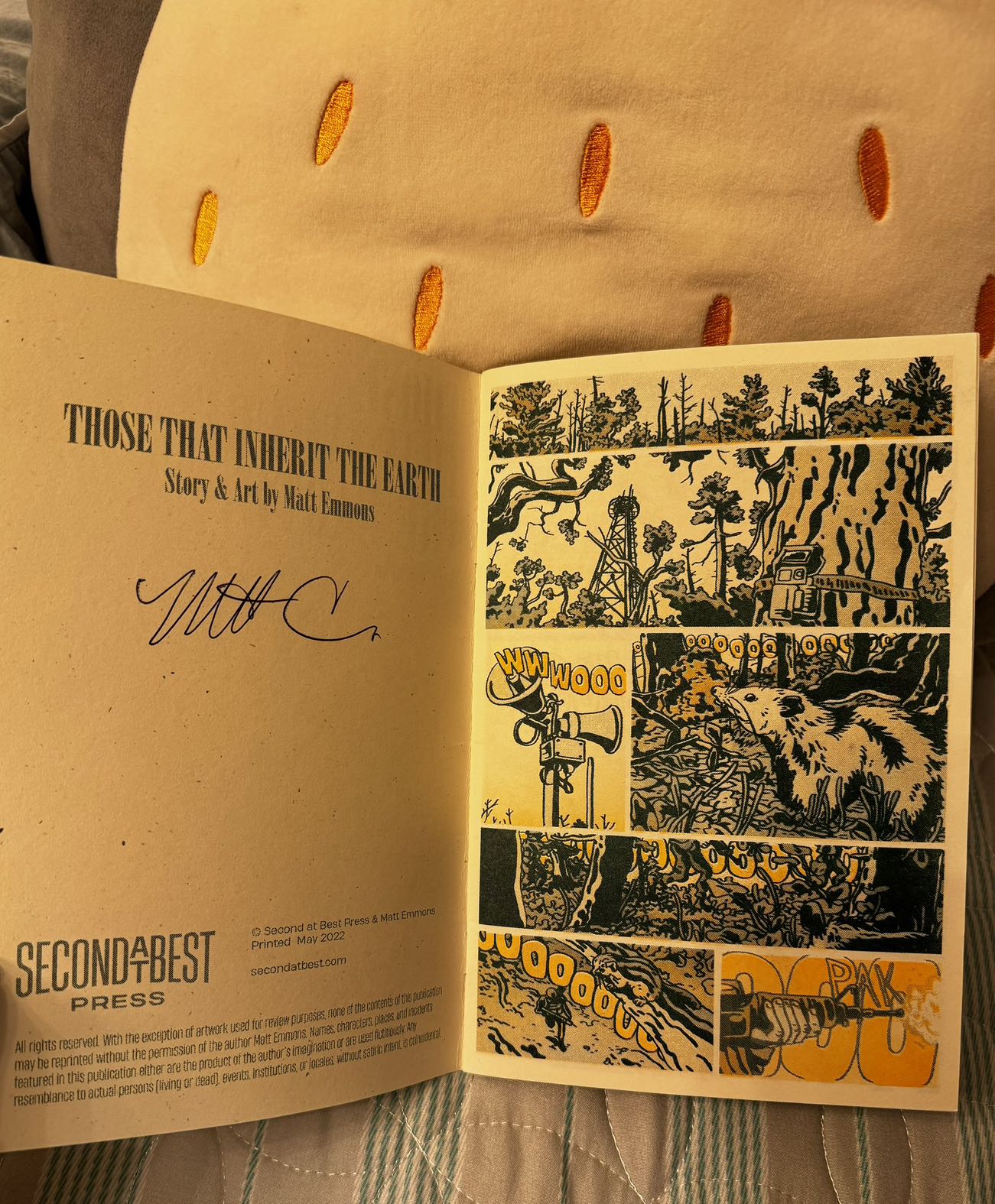 I recently visited FanExpo 2023 as Angel Devil from Chainsaw Man and was delighted to secure a signed copy of this charming fantasy graphic novel by Matt Emmons. His work has this beautiful graphite lineart, and retains a strong sense of colour scheme and composition in each panel.